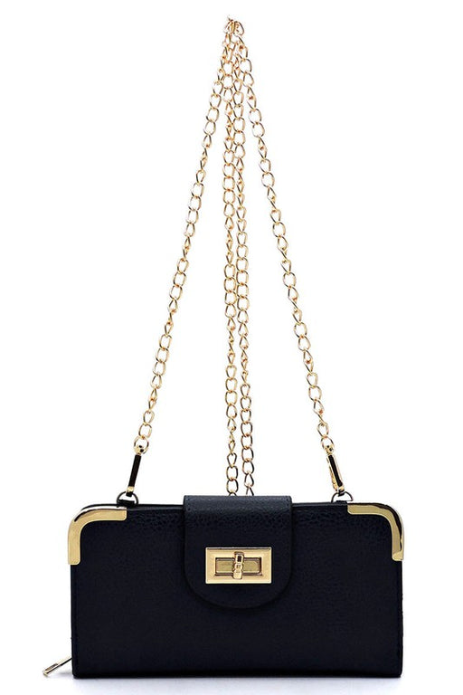 Fashion Turn Lock Crossbody WalletFaux vegan leatherTurn-lock & Zip closureGold-tone hardwareDetachable chain shoulder strapL 7.75 * H 4 * W 1.25