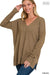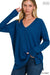 - Model Spec: Model is 5' 9" wearing a size small. - Style: Casual - Feature: Flowy silhouette for a relaxed vibe - Print/ Pattern: Stretch fabric, Non-sheer fabric - Neckline: V-Neck - Silhouette: Durable seam sweater - Embellishment: Ribbed hem, cuff sleeve - Length: Long - Sleeve: Long sleeve - Fit: Relaxed fit - Closure: N/A - Lining: Ribbed hem - Care Instruction: Machine wash cold, gentle cycle, tumble dry low. Color may vary slightly due to monitor resolution