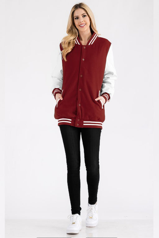 WEIVWomens Boyfriend Oversize Letterman JacketVarsity Jacket StyleSnap Button ClosurePU SleevePadded and Quilted InsideInside Left Chest Pocket100% Pol...