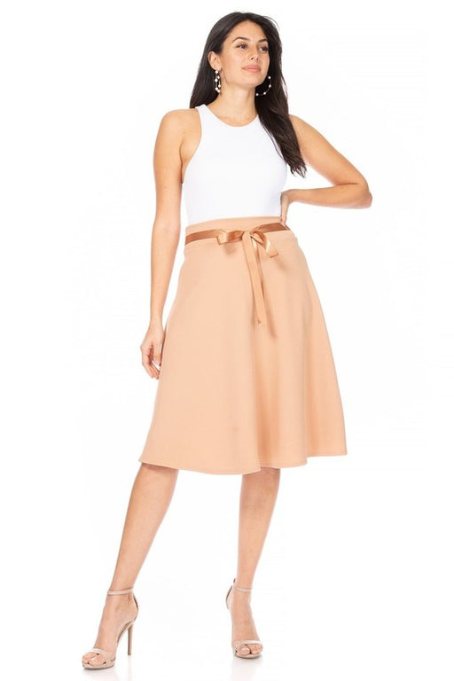 Moa CollectionPlus size, solid, A-line, knee length skirt with a waist bow tie accent. Approx Length: 27 in from waist to hem. Waist: 31 in Model is wearing a si...