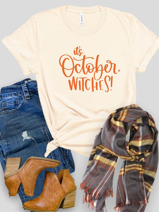 Ocean and 7thIt's October Witches Crewneck Tee100% combed and ring spun cotton Unisex TeeFabric Contents: Ring Spun Cotton