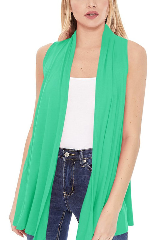 Moa CollectionSolid, long body open front vest in a loose fit with a draped neck and asymmetrical hem.*Approx: Length: 34in (Including scrunched collar 3.5 in), ...