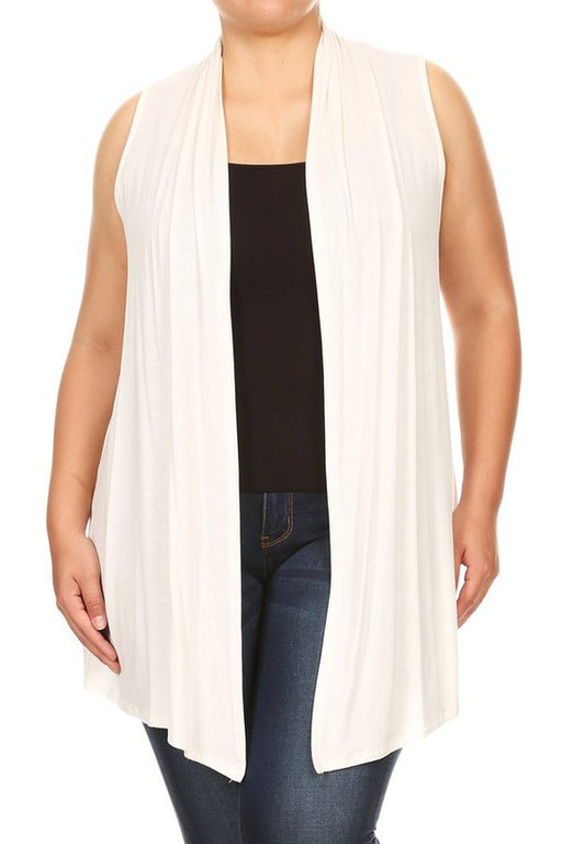 Moa CollectionPlus size, solid duster cardigan in a loose fit with an open front, long sleeves, and side pockets.Approx: Length: 46in, Bust: 44in, Sleeve: 25in, ...