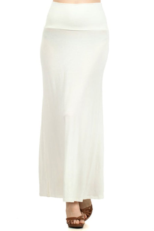 Moa CollectionSolid, high waisted, a-line maxi skirt in a loose fit with a fold-able waistband.Length: Approx 42.5 inches from waist to hem (including banded wai...