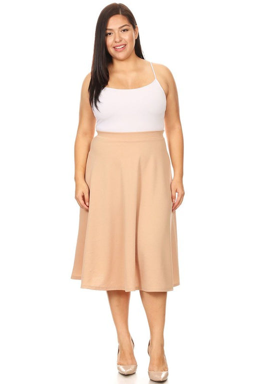 View full detailsPlus size, solid, high waisted, A-line, midi skirt
