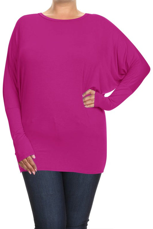View full detailsPlus Solid jersey knit Dolman top Long sleeves