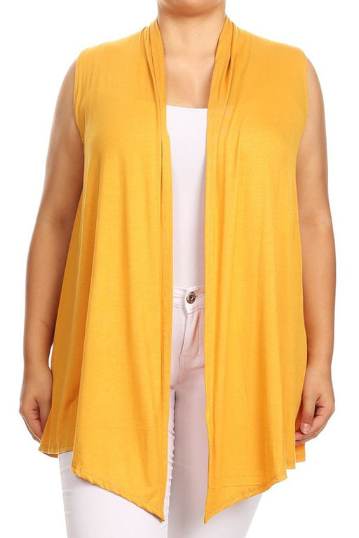 Moa CollectionPlus size, solid duster cardigan in a loose fit with an open front, long sleeves, and side pockets.Approx: Length: 46in, Bust: 44in, Sleeve: 25in, ...