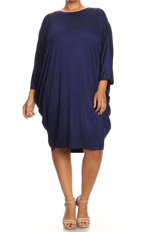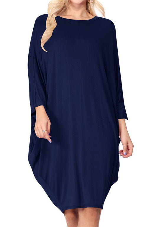 Moa CollectionSolid dolman dress with round neckline and 3/4 sleevesApprox: Length: 42 inRAYON SPANDEXMade In: USAFabric Contents: 95%RAYON 5%SPANDEX