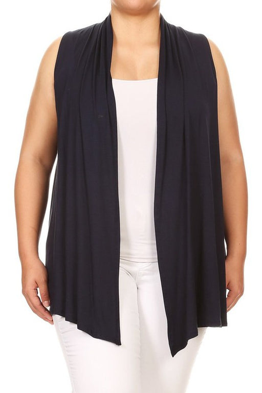 Moa CollectionPlus size, solid duster cardigan in a loose fit with an open front, long sleeves, and side pockets.Approx: Length: 46in, Bust: 44in, Sleeve: 25in, ...