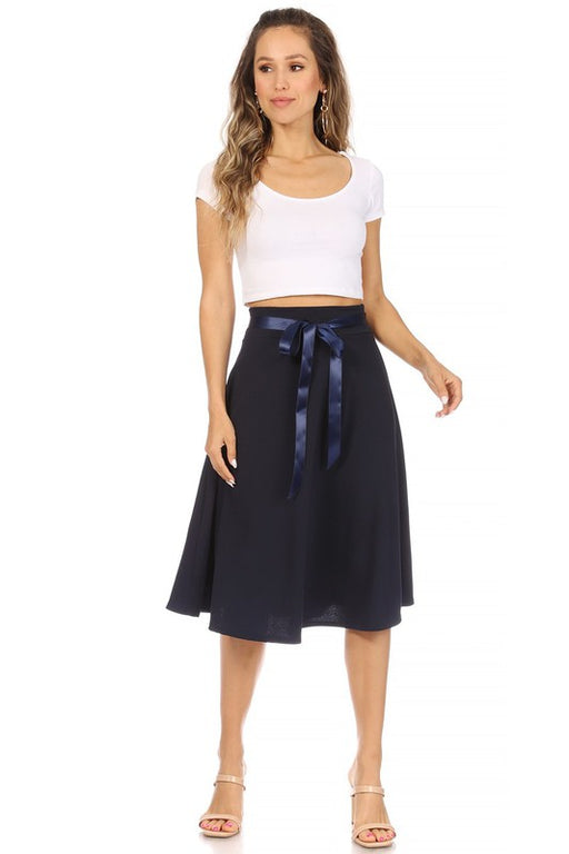 Moa CollectionPlus size, solid, A-line, knee length skirt with a waist bow tie accent. Approx Length: 27 in from waist to hem. Waist: 31 in Model is wearing a si...