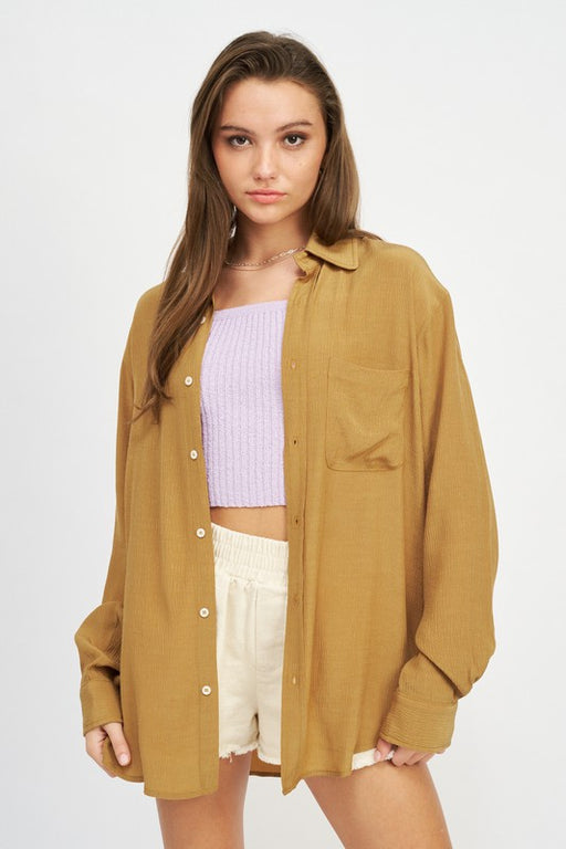 View full detailsCONTRASTED BUTTON DOWN SHIRT WITH POCKET