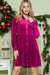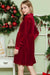 This dress features a luxurious velvet fabric in a beautiful red color that adds a touch of sophistication. The long sleeves provide coverage, while the ruffle detailing adds a feminine and chic touch. The button-up front allows for easy wear and adjustable styling options.