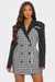 Step up your style game with the Monochrome Glam Houndstooth Blazer Dress. This striking piece combines classic black and white houndstooth with edgy embellishments, such as intricate beading along the chest for a touch of glam. Its tailored fit and double-breasted design bring a chic and powerful look, while the long sleeves and lapel collar give it a timeless, structured silhouette. Whether worn as a dress or styled as a statement outer layer, this piece is perfect for making an unforgettable impression.