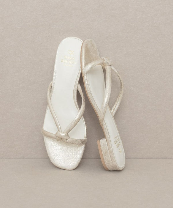 A delicate knotted sandal that doesn't slide around. These flat sandals feature a delicate and intricate knotted design that adds an elegant touch to your look, perfect for warm-weather outings.