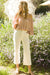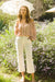 A very comfortable stretchy pants. Made from an adaptable fabric featuring high-rise, button closure at front, wide leg that hits above the ankle. G-6, 7 (19x 6)