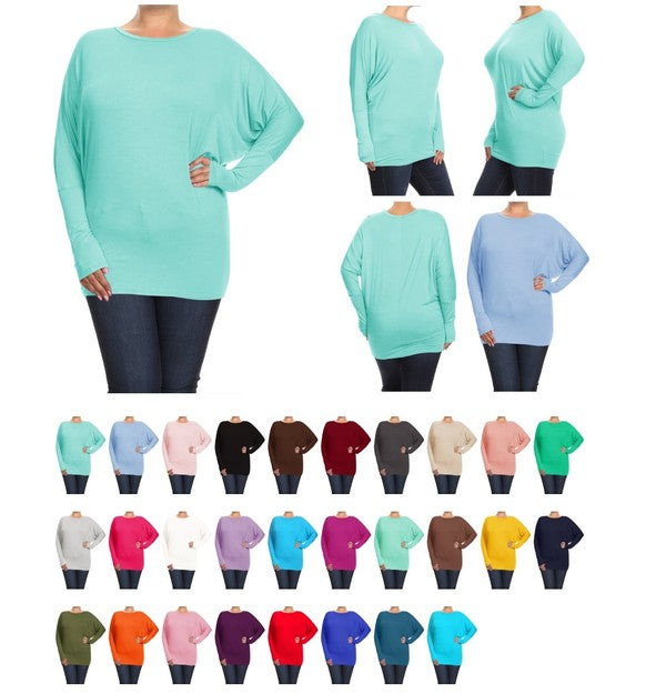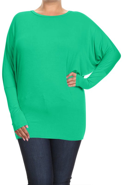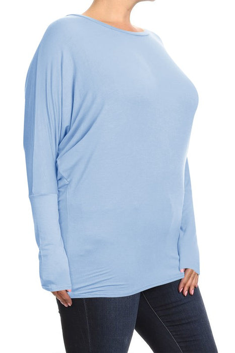 This plus size top is made from a soft and stretchy jersey knit fabric, which is known for its comfortable and easy-to-wear properties. The solid color of the fabric gives the top a clean and classic look, making it versatile and easy to dress up or down. Approx: Length: 29in, Bust: 42in, Sleeve: 27in, Shoulder: 19in Model is wearing a size XL -Variety of colors & style options available by searching B5000 SD -Continuously manufactured throughout the year. -Custom label available upon request.