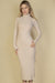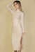 - Feature: Long sleeve, high neck, side slit, bodycon
